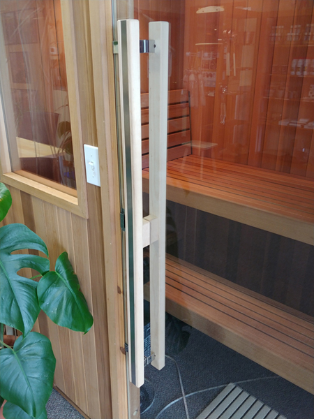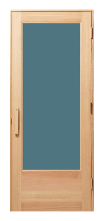 Finlandia Sauna Wood Doors are manufactured from the highest quality vertical grain Douglas Fir available from the Pacific Northwest. Engineered door stiles and solid wood rails insure long term stability. Side and top wood rails are 4” wide. All of our wood doors are fitted with tempered, insulated glass, which provides superior insulation and heat retention.